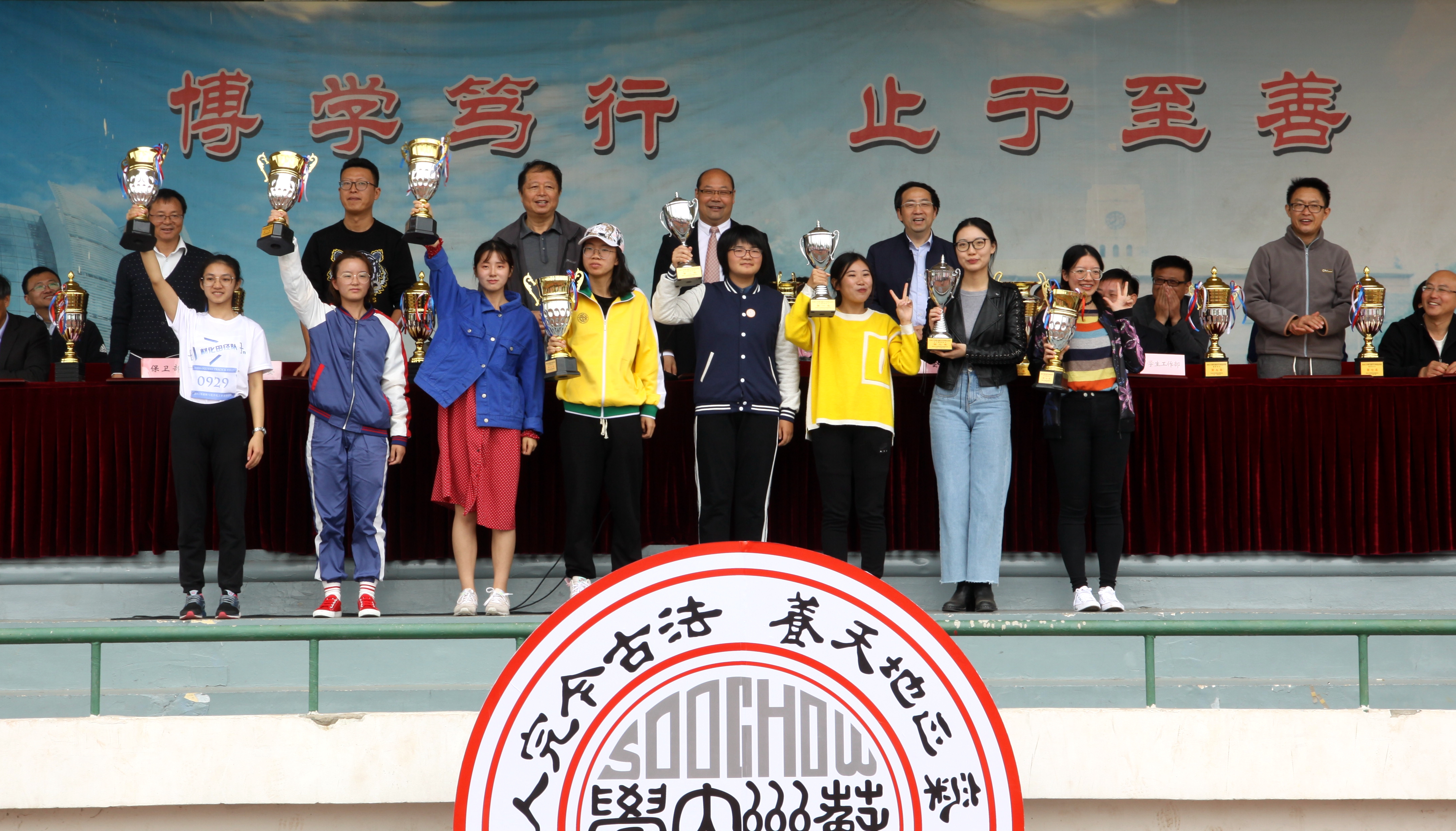 为期三天的运动会,全体运动员团结协作、顽强拼搏,展现了苏大师生奋发向上、勇攀高峰的精神面貌,全体裁判员严于律己、恪尽职守,严肃了赛风赛纪,工作人员无私奉献,精心服务,付出了辛勤的劳动,为运动会的顺利举行保驾护航,共同成就了一场精彩难忘的体育盛会。