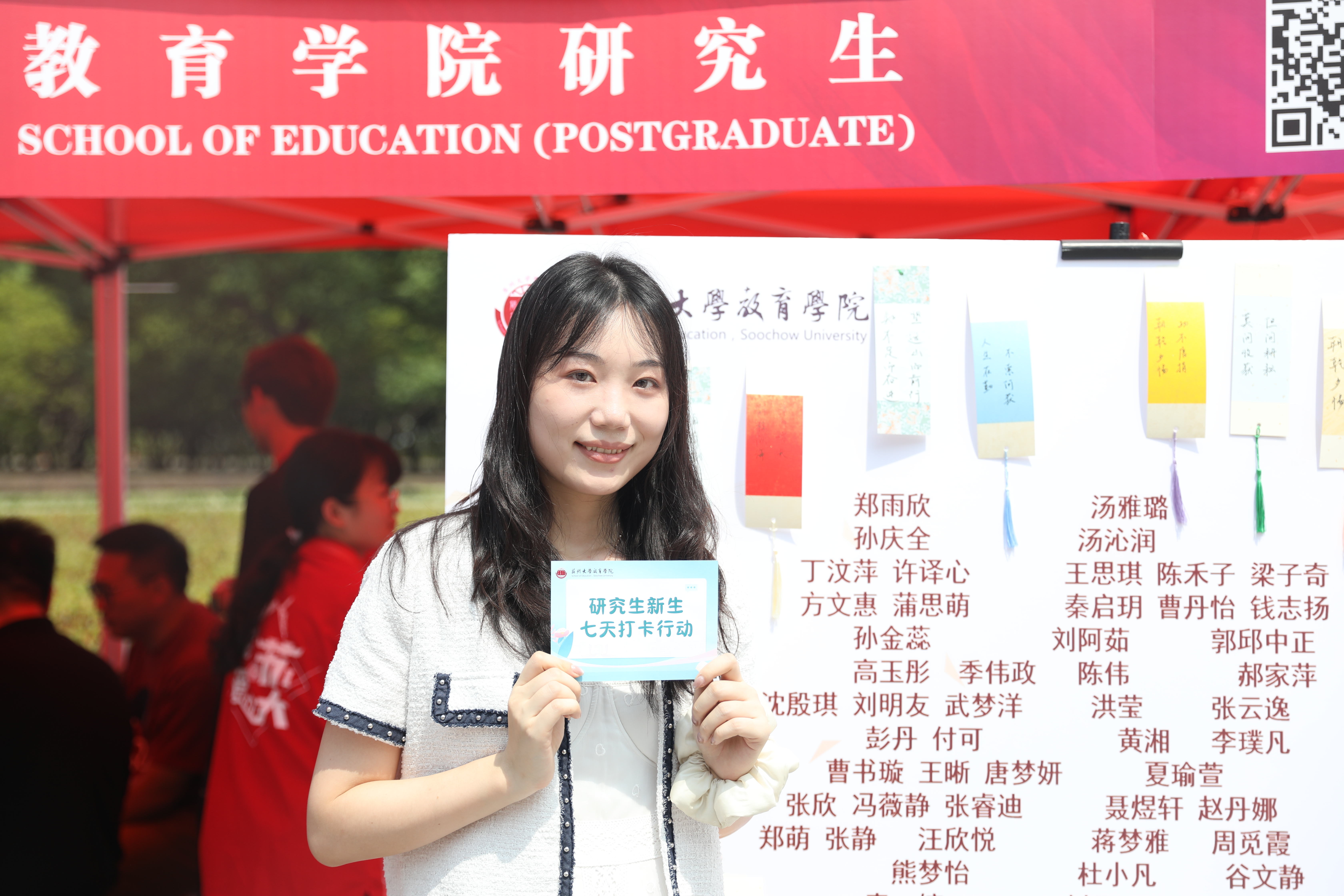 教育学院精心策划了“新生七日打卡行动”,其中包括与苏大标志性建筑合照、教师节向老师发祝福、阅读本专业核心期刊论文等任务,帮助新生更快适应大学新生活、科学规划学习生涯。